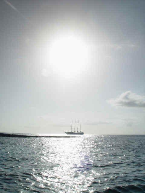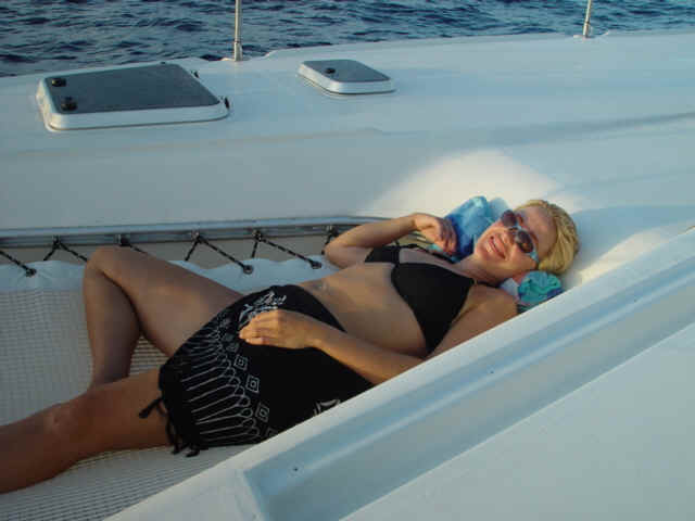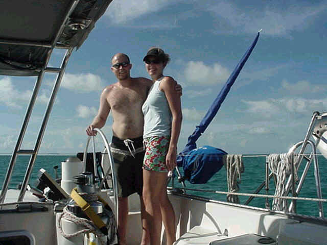 Ship's Log - August 15, 2002 We are refueling in Turtle Cay Harbor. It is a tropical paradise! We saw both black and spotted Manta Rays "flying" across the bottom on our way to the fuel docks. I saw some of the best meteors last night. It is incredible. Thank God for this beauty!! Kate