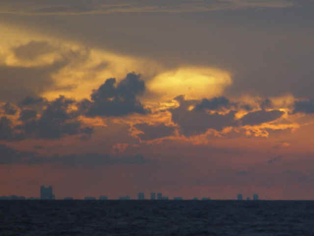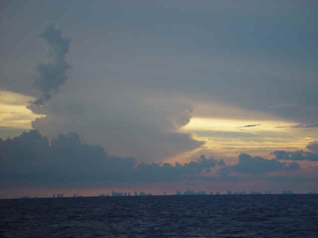 Sunset over Miami as we sailed out towards the Gulf Stream