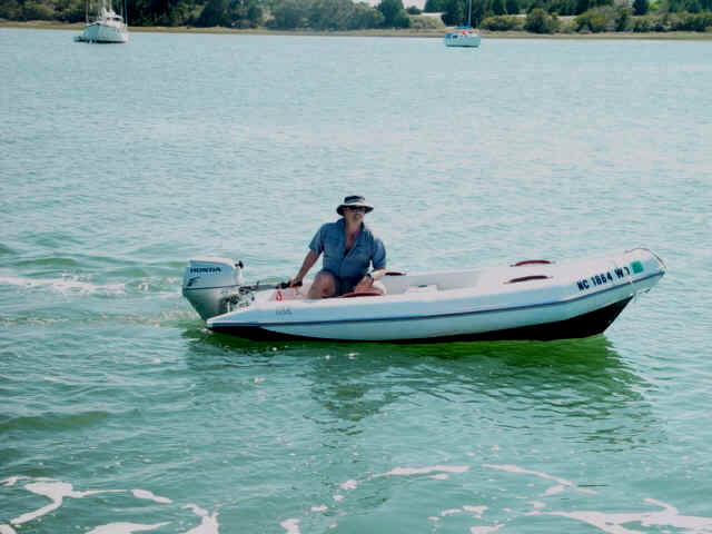 Mike on the way back to the big boat in the little boat, "Littly" The commute is "horrible"