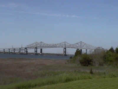 situated on a narrow, low-lying peninsula between the Ashley and Cooper