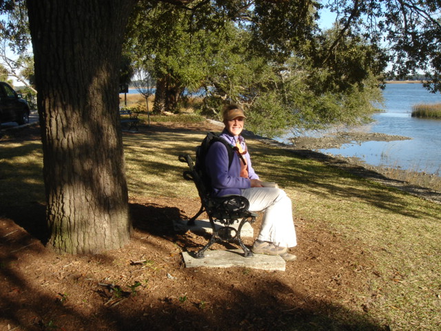 This morning Mike woke up at 3:30am raring to go, Aaaaaaaarrrrrrrrrggggggghhhhhhhhhhhh!!!! He let me sleep until 7am Thank God! There was a hard freeze warning overnight down in the 20's. This morning was chilly and we ran down the creek with the tide headed for Beaufort, SC. We went down many winding rivers today with splendid views and beautiful shore birds. The hooded mergansers were the most striking ducks and we saw dolphins numerous times. There was lots of shallow water and caution areas to look out for, but we did not run aground at all, what an accomplishment! We arrived in Beaufort, SC for the 1:30pm swing bridge opening. We pulled up to the town docks for some fuel and Hallelujah we only spent $16 on diesel after 2 days of motoring, Great! Tomorrow got another bath and we topped off the water tanks. The anchorage was right next to the dock, so we headed over and dropped the hook. Then we lowered the dinghy and took off for shore for the wireless connection! We walked around taking in the gorgeous scenery and incredible homes, Mike got some fantastic shots! The Spanish moss was so picturesque in all of the live oaks. I had a bit of a craving for Southern Pralines, but we made it back to the coffee shop that had pralines too late. We had decided to head offshore the next day and I needed some sugar for the more than 30+ hours offshore. Mike volunteered to head for the Chocolate Factory, Wow! He never does that, so we are supplied for the offshore passage. We have vowed if it may possibly be our last meal it will be good. We had a great dinner and hoisted the dinghy. The lines were wearing on the dinghy, so we reinforced it with some reflective tape. We are getting ready for offshore and Mike did fix the auto pilot, Yeah! One of our hatches is leaking so we need to do a little repair. The wind generator also blew a fuse, so we are still trouble shooting it. We do have 4 hours of motoring down the river before we head out to sea. Mike will be busy fixing things and I will be navigating. If we need to duck in early there are plenty of options, but we may go all the way to St. Augustine. Pray for fair winds and following seas. We are so blessed, we truly feel your prayers and positive thoughts. Thanks to all of you and God Bless!