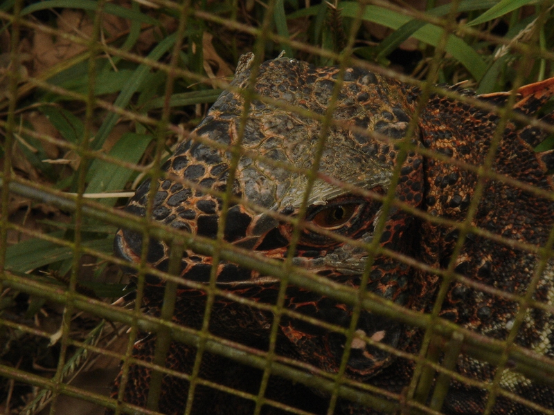 A terrarium which used to house golden frogs is now home to 4 huge iguanas