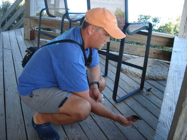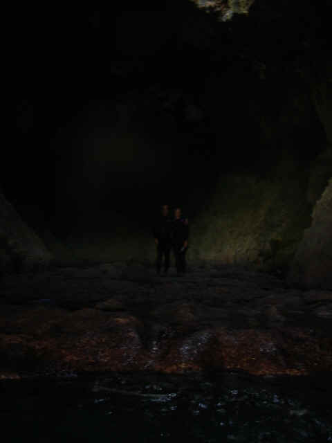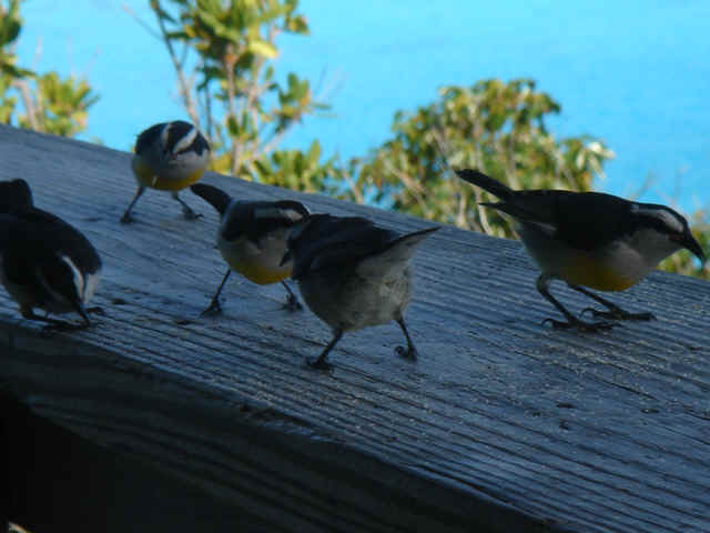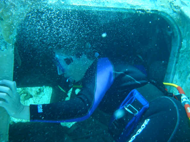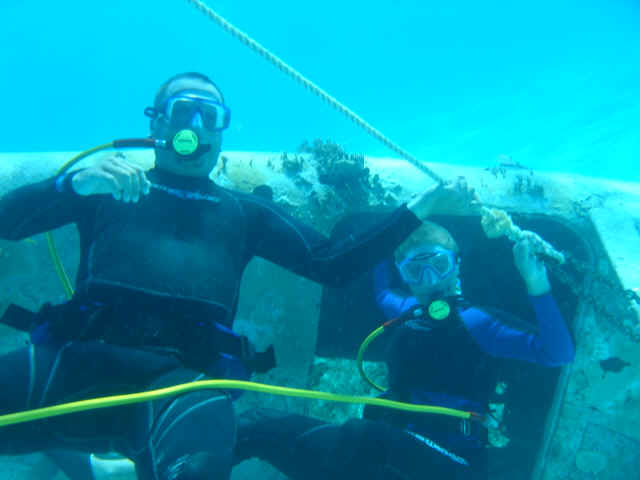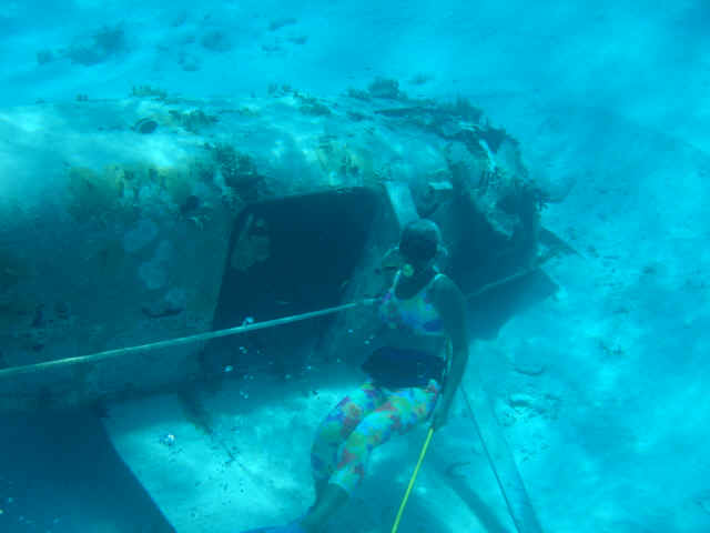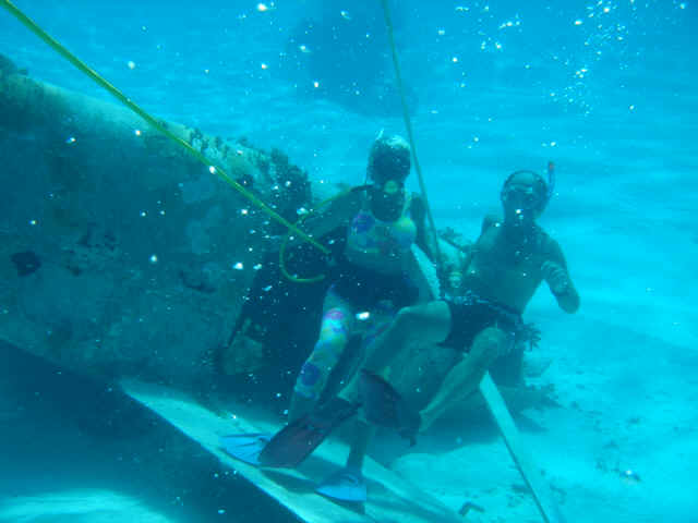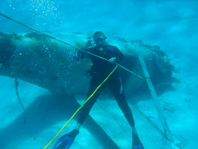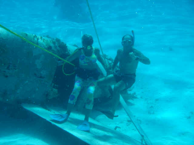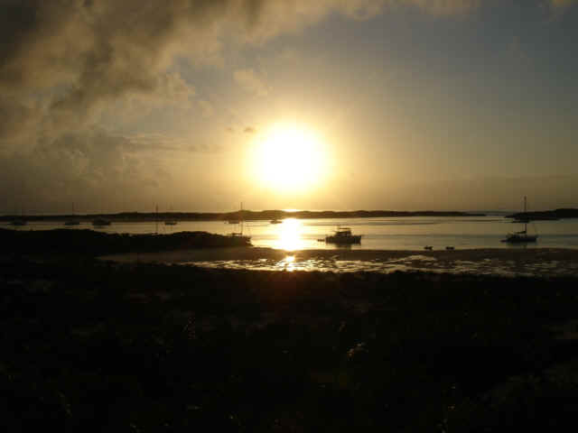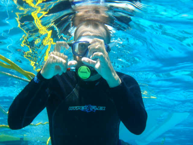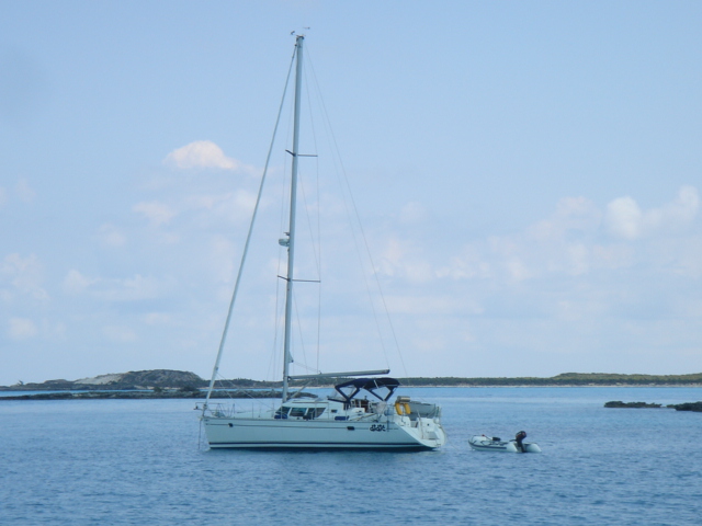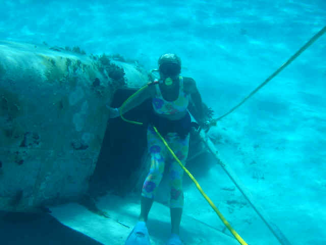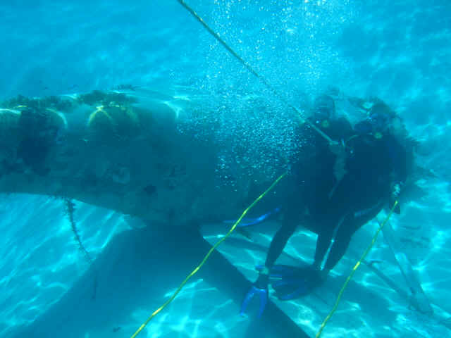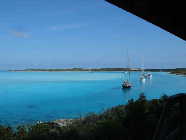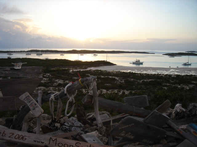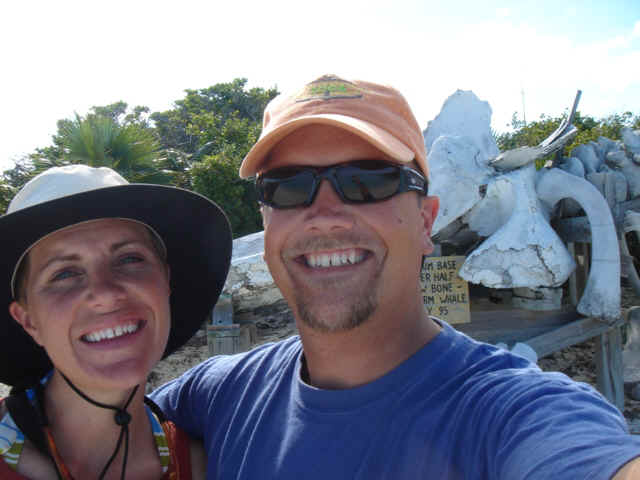 Friday, March 3, 2006 Waderick Wells In the morning, we dinghied over to the Exuma Park HQ to pay for our mooring and to look around. Our plan was to leave at around 9 or 10am to look for some diving sites that we heard were excellent. At the Park HQ, we made some new friends called bananaquits, who were happy to jump right into our hands to get some bread crumbs. John and Elaine paid for a wireless connection, with which they phoned their kids and parents in South Africa using Skype.com. What an amazing world we live in, that way out here, in the middle of nowhere, they can use their computer to call across the ocean for just pennies. When we returned to the boats, we fired everything up and moved an hour or so down the islands to Bell Cut, where we anchored just east of Bell Island. We used this anchorage for the afternoon to do a couple of dives in the area before we moved on a little further south to anchor for the night. The first place we dove was at a beautiful reef, complete with a crashed airplane. We had a great time swimming all around the wreck and along the reef, both of which was full of tropical fish. John, who has been a SCUBA instructor for over 20 years, spent some time with us doing drills to be sure that we could handle any emergencies. We learned to clear the water out of our masks by using the bubbles from our regulators to displace the water and to clear the mask. We also learned to buddy breathe so that in the case that one of us lost air, we would be able to share one demand valve and make it back to the surface. While we were diving on the wrecked plane, we were visited by a huge spotted eagle ray, about 6 feet from wingtip to wingtip - what an amazing site. After we had enough of the plane reef, we moved on to a dive called the Sea Aquarium, which was absolutely awesome. The coral and fish were abundant and colorful, and we helped the experience along by bringing a little food for the fish. We had a blast swimming up and down, in and around the massive coral stands, with fish of all colors and descriptions coming out to meet us. Incredible! Saturday, March 4, 2006 Rocky Dundas After the dives, we headed back to the boats to cover another 6 miles heading south. We anchored in the northeast anchorage of Chicken Cay, just west of a place called the Rocky Dundas. We planned to spend the next morning exploring the caves that were supposed to be at the Dundas, then do some diving nearby, before heading a little further down the islands. Waderick Wells, Exuma Park headquarters -taken from the top of Boo Boo Hill The mountain of mementos on the top of Boo Boo Hill, Warderick Wells Some friends of ours from Beaufort, NC Our little addition Mike feeding the bananaquit from his hand Bananaquits Huge hermit crabs with turban shells The view from the park headquarters Tomorrow moored at Warderick Wells Skeleton of a 52' Sperm Whale Where's Waldo?? On the way to the next paradise, John & Elaine on Didit The airplane wreck site off of O'Briens Cay There was a float tied off to the airplane and we followed the line down to the bottom The current was ripping through here The wreck was 25ft down Mike investigating the wreck, the plane was upside down - Not Good! The inside of the wreck was filled with the most beautiful corals, and thankfully no sharks! You can see the exhaust pipes on top Mike and Kate at the airplane, looked like a single engine You have to hold your breath so you don't get bubbles in your pictures Elaine on the Hookah Elaine The international sign for "let me take a picture of you" John and Elaine Notice John has only a snorkel Kate getting braver all the time The current was ripping through here, it was hard to stay down even with the weight belts Thank God for our wetsuits! It allowed us to stay down much longer than we would have been able to otherwise Mike learning to clear his mask Moving on to the next reef, Sea Aquarium Yellow Stingray Yellowtail snapper A Nassau Grouper is in the middle of the picture, he has stripes to camouflage him Sergeant Majors were not timid! Queen angelfish Kate trying to feed the fish and stay down, by holding onto the mooring line Trumpetfish Feeding Frenzy! They loved the granola bars! Mike hand fed them until he got nipped Queen triggerfish Queen triggerfish Parrotfish The Queen! Kate is holding onto the mooring ball line with her legs so she can stay upright and feed the fish We had a blast doing this, too bad the granola ran out The Sea Aquarium - Perfect Name! John tied chains around his waist to use as a weight belt, it worked great Queen angelfish John & Elaine at the Sea Aquarium Rainbow fish? Tomorrow at anchor on Chicken Cay Sunset at Chicken Cay Rocky Dundas There were beautiful reef fish and they were not timid either A huge Elkhorn Coral formation in the Rocky Dundas Mike and Kate inside the South Cave at the Rocky Dundas This cave was huge and there was a hole in the top where the sunlight could peek through A chiton, an ancestor of the trilobite, there were lots of them inside the caves Another Chiton The top of the cave about 100ft up Another variety of starfish John & Elaine in the South Cave, Rocky Dundas Chiton The limestone inside of the caves was very smooth, unlike all of the other craggly limestone we had encountered up to this point Some seals hangin' out in the South Cave There was a coral reef all around the Dundas Yellowtail Snapper The North Cave was full of Stalactites and Stalagmites A snorkelfish in the North Cave The hole in the top of the North Cave The ceiling in the North Cave Mike & Kate in the North Cave The view of the entrance to the North Cave from inside, you only hads six inches of clearance, so you had to dive under the ledge Parrotfish on the reef at the Dundas Peacock flounder has the best camouflage, can you see it?? Elaine on the Elkhorn reef The elkhorn coral was massive, it almost reached the surface This coral looked like perfect snowflakes, sorry to mention snow