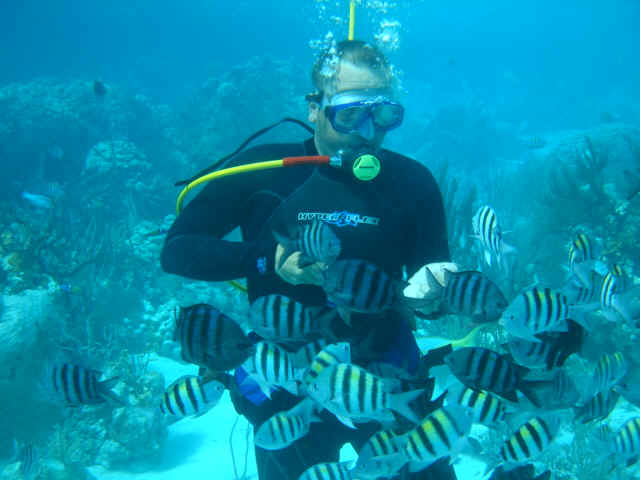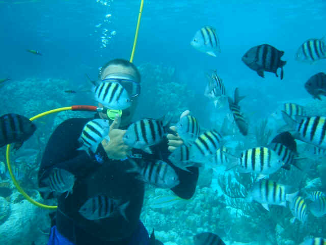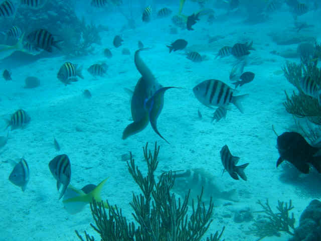 A huge ball of grooved brain coral The rainbow parrotfish Mike, I would love one of these! Elkhorn coral Didit at anchor on Chicken Cay just before we split up Bonvoyage Didit, it was great hangin' with you!!