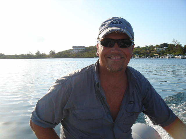Mike with the barracuda we caught. The water in Exuma Sound was a gorgeous dark blue.