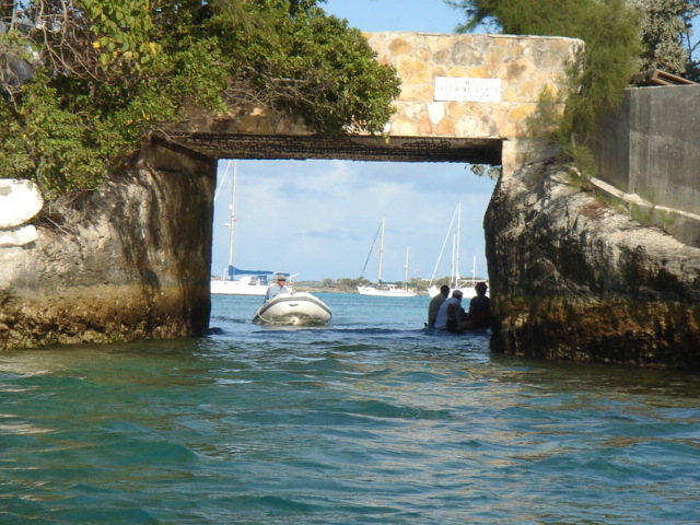 You have to go under the rock bridge to get to the dinghy dock