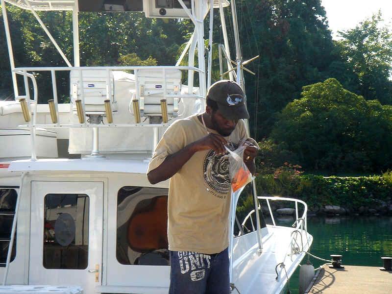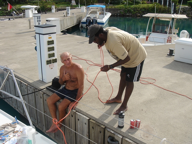 Hulk is on the trimaran at the end of the pier, he did a lot of buffing on Stray Cat