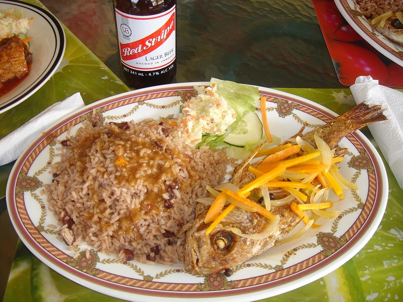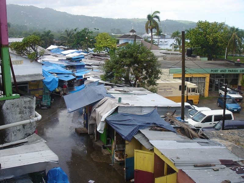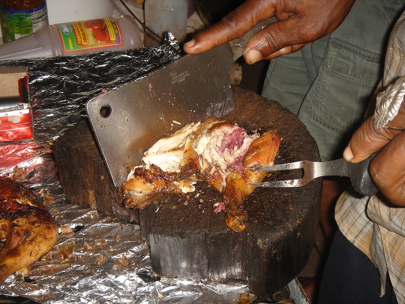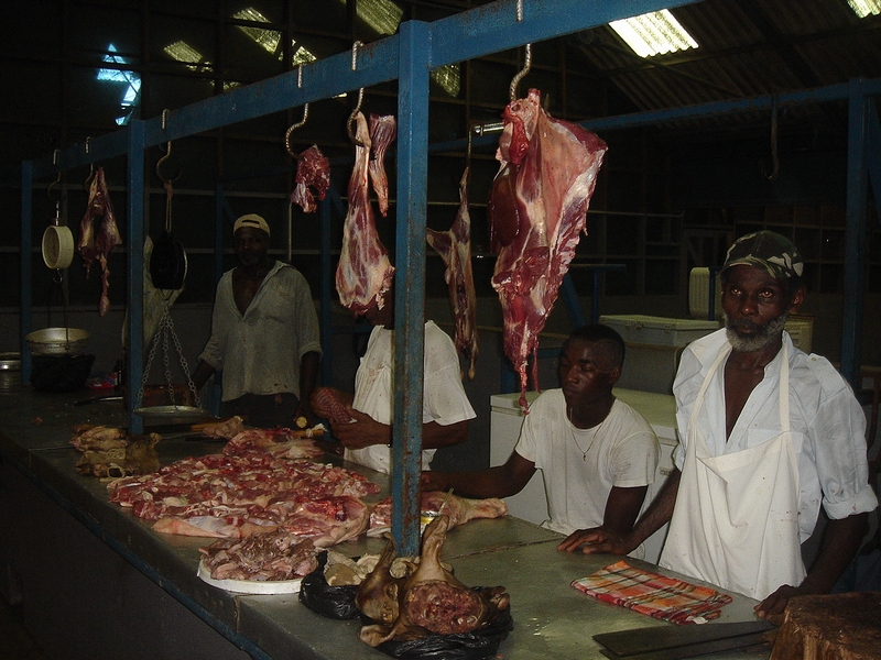 Goat is the primary meat in Jamaica, notice the intestines and hooves in the background, Yummmmm...