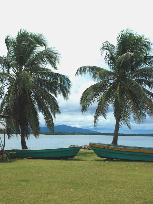 Federico & Tomas arrived by 11:30am and Federico was in rare form!  He had been drinking and partying all night and the first thing he requested was a beer.  We gave him 2 which he quickly downed before we realized the state he was in – Drunk!  Federico rode the bow of the cayuco and we all piled in for our “15 minute” ride to Isla Tigre.  It was a bit windy this day and our “15-minute” ride turned into a 45-minute bouncy and wet ride.  The best part of the ride was seeing all of the beautiful deserted islands along the way and watching Federico get splashed over and over as he tried to sleep one off on the bow while the rolling waves crashed over him.