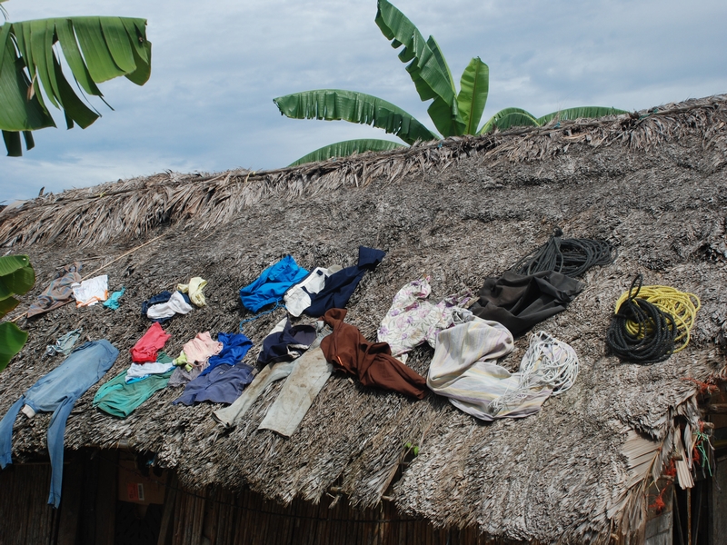 Some huts were quite large, you can see all of the coconut husks gathered on the left hand side of the hut for fire starting