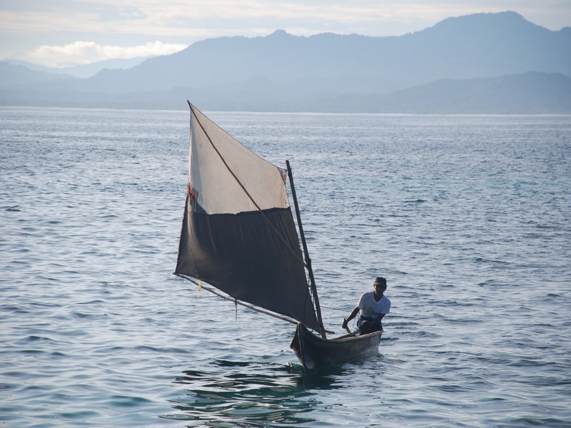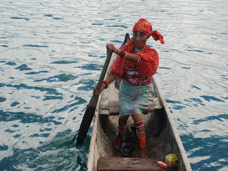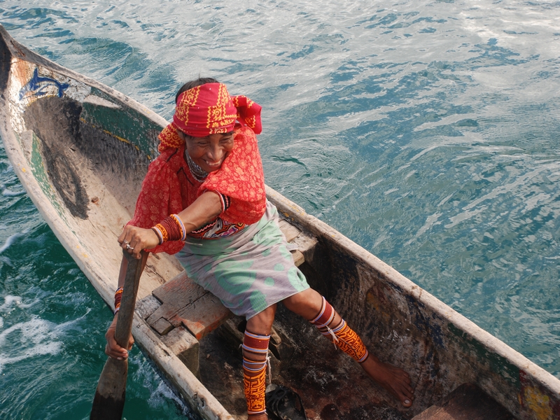 Federico on the bow of our cayuco which took us to Isla Tigre, that is the island where the Tradicional Kuna Village was located