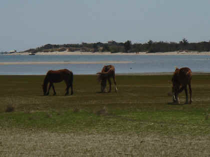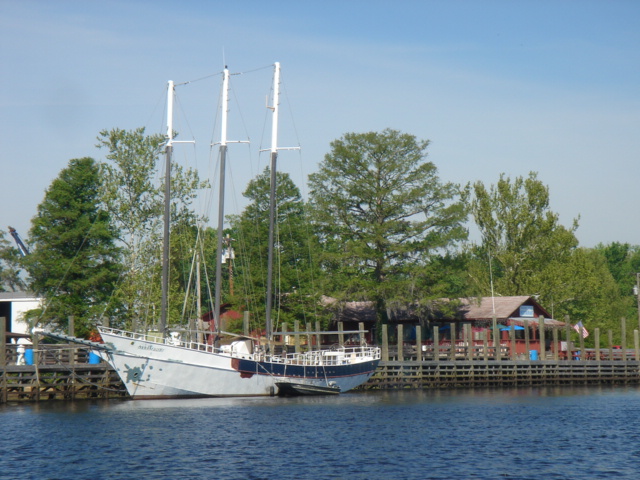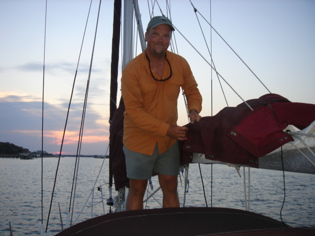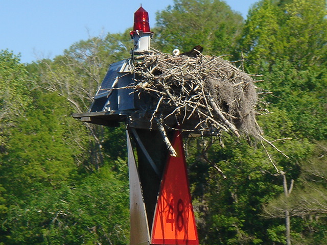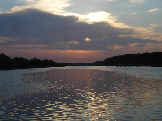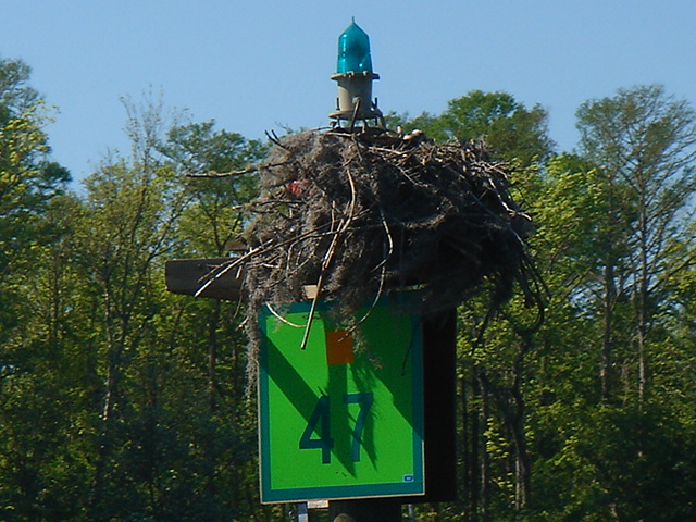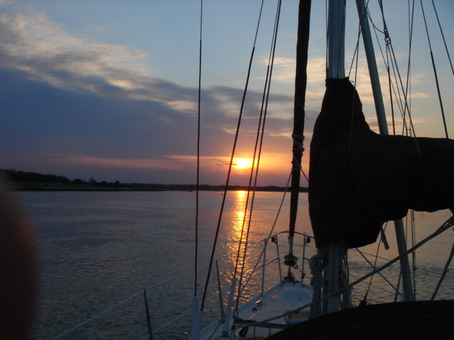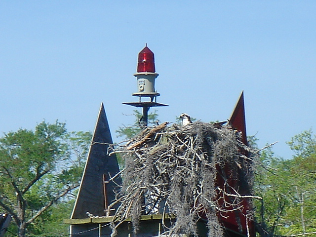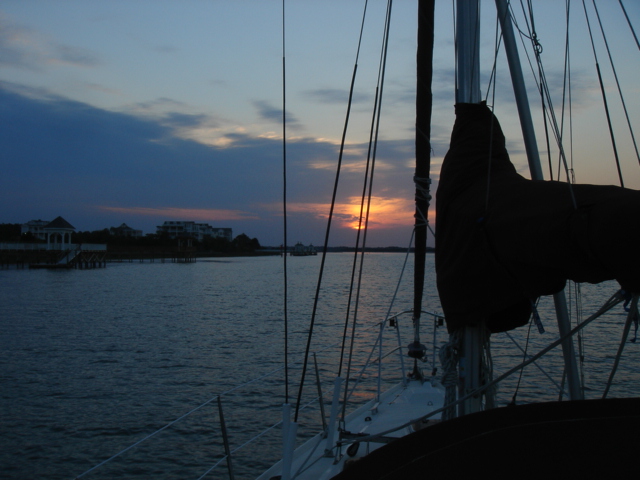 Just another beautiful house on the ICW - Southport, NC Osprey Nests were everywhere on this stretch of the ICW through South Carolina Almost every nest we saw had at least one Osprey in it, this one had two The river was a dark brown color from the tannins in the trees This osprey is looking right at you The nests are enormous An osprey is also called a fish hawk We have seen them pluck flounder off of the bottom of the river A schooner on the ICW A Pirate Ship hidden in a cove in South Carolina A Swing Bridge on the ICW The bridge tender is in the white booth in the middle of the bridge Capt. Mike We are nearing Myrtle Beach The houses keep getting bigger and bigger the closer we get to Myrtle Beach The Jungle Princess a huge tour boat out of Myrtle Beach This was a gondola to get you across the ICW to a golf course, pretty cool! This is the only Pontoon Bridge on the entire ICW, it is a relic and there are plans to do away with it. It is at Sunset Beach, NC Holden Beach, NC - The Provision Co. Mike decided we would not be going offshore and is putting the sail cover on the mainsail Sunrise Easter morning Looks like God made it an extra special sunrise He sent dolphins for us to enjoy What a spread This is an historic home in Southport, NC - It was inhabited by a Captain who was the most famous Confederate pilot for the blockade runners during the Civil War Some of the less interesting scenery - Wilmington, NC Mike wound up taking the sail cover off - we left the ICW at Masonboro Inlet to sail to Beaufort Yeah, we are out of the ICW! Another night passage and we are back in Beaufort Our last sunset of the trip Back to work in Beaufort A Wild Horse & Shelling Safari guided by Mike, hope you got some rest! The horses were very active