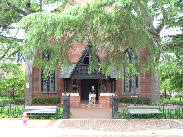 The sunset from the stern of Mike and Kate's boat Grace & Kate in New Bern, NC just after arriving on the Airplane! One of the oldest churches in New Bern. North Carolina's 2nd oldest city of 1710. Grace & Kate in front of the church The cemetery with some very historic graves. The grass was green and the flowers were blooming! Mike's infamous flower pix