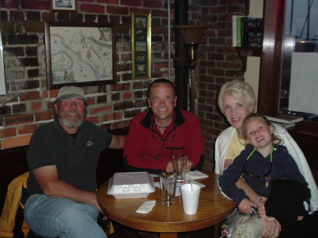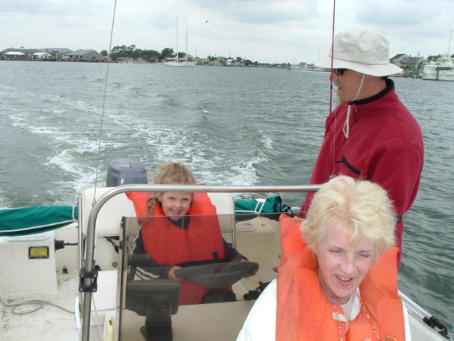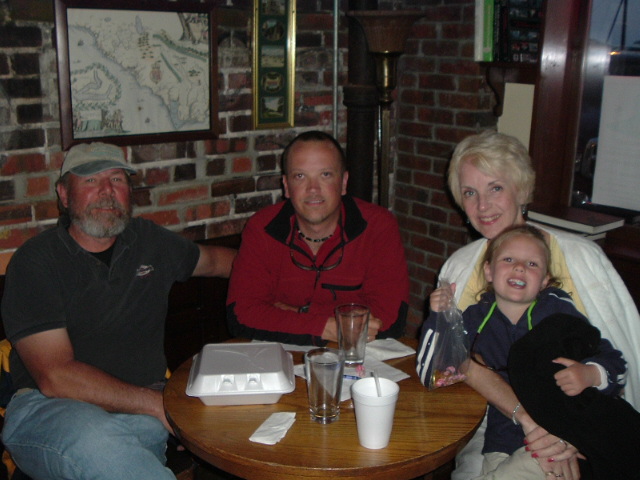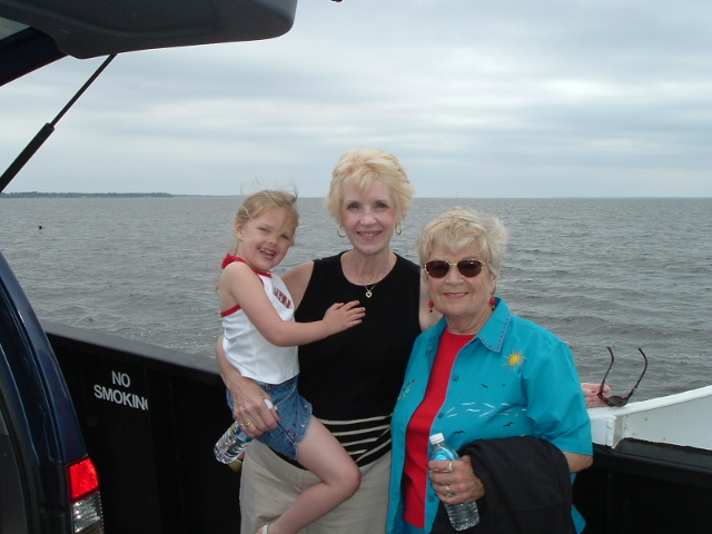 New Bern's mascot is the Bear. They do have Black Bears in the Croatan National Forest nearby. Mimi squared with Grace on the Minnesott Ferry headed to Oriental, NC This is the ferry that took our cars across the Pamlico Sound to Oriental, NC. The Lambert's havin' a tailgate, Hurry Up the Ferry is only 20 minutes! Grace & Uncle Mike on the top deck of the Ferry. Grace, Ashlie and John fresh off the ferry in Oriental. Just add Water! It sure is windy around here!