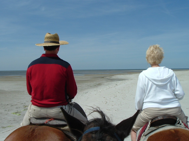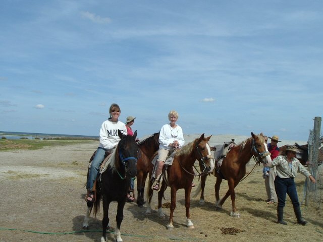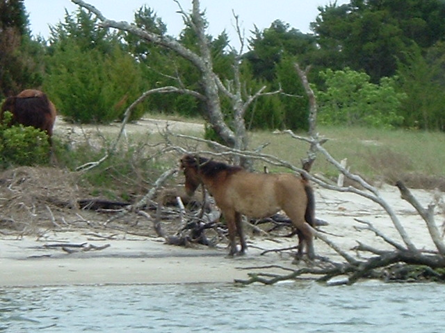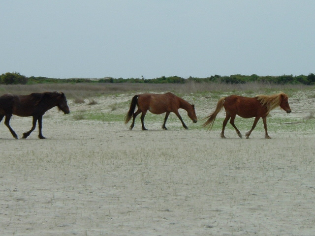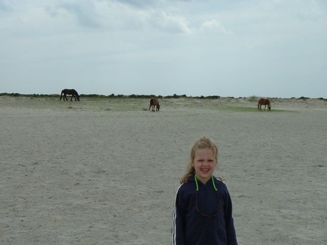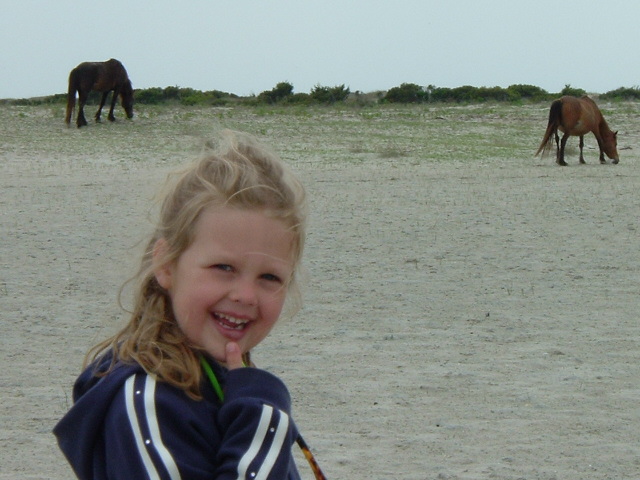 The wild Spanish Mustangs of Shackleford Banks They got pretty close Even too close They like to eat the Marsh Grass They travel in Harems with one stallion to many mares Mimi & Kate enjoy the peace of the beach and the sand between their toes.........