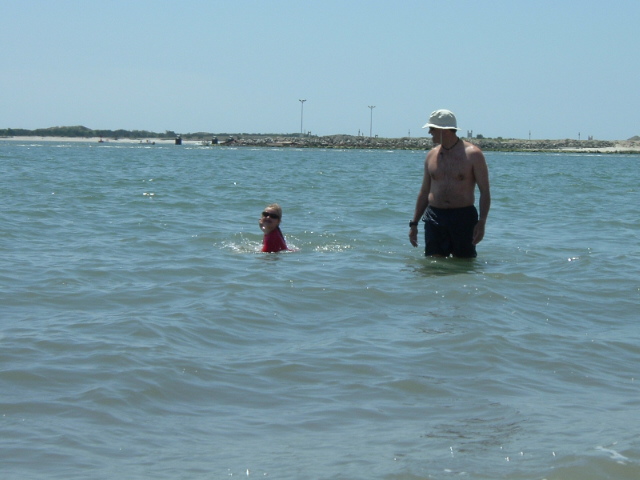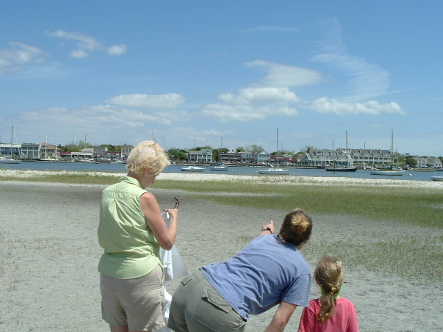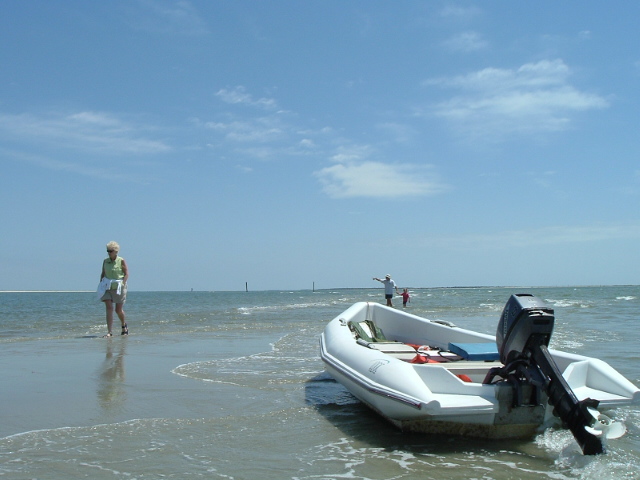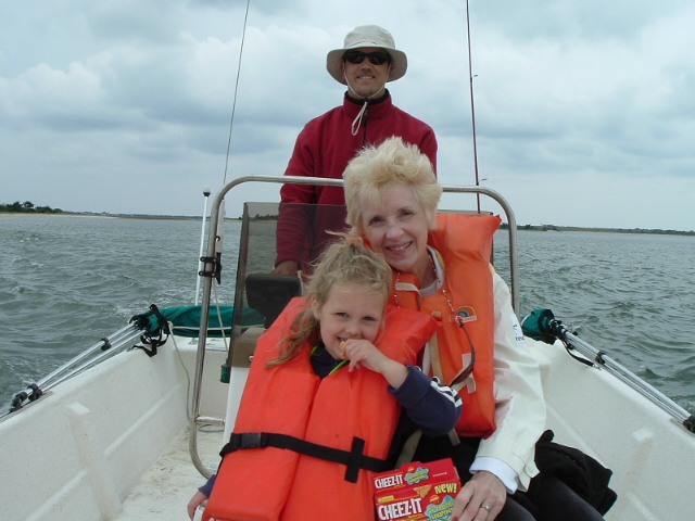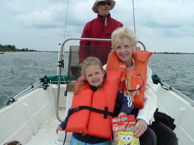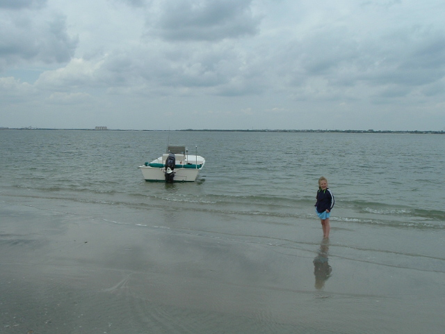 Whoa!!! Another boat ride I'm helping hold the bowline for Uncle Mike, Boating is work! Look ma, I always wore my lifejacket! Away we go! The Beaufort Waterfront from Carrot Island Mimi, Aunt Kate & Grace A male fiddler crab He was very pretty He didn't even bite We beached a boat on the sandbar right in the Beaufort Inlet We had to drag her out of the water I love it!