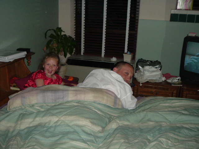 I'm not tired!! Mimi, Kate & Grace at Harborside Suites - E Gracie finally wore out Uncle Mike- The Human Junglegym I'm not tired See!