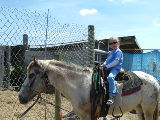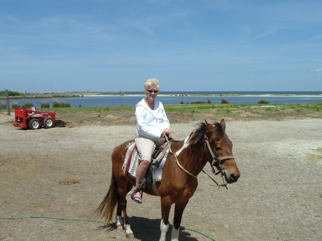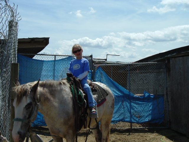 I loved the new pool and Uncle Mike & Aunt Kate's! Can I do a Puzzle Uncle Mike???!!! Capt. John, Uncle Mike, Mimi & Grace at Clawson's after some delicious Onion Rings and Chicken Wings! I had to have a piece of blue gum Mimi and Grace @ Clawson's Grace took this picture, Lookout Kerry, we've got a new photographer in the family! Mimi at the OuterBanks Riding Stables, her horses name was Margie, it was a gorgeous day!