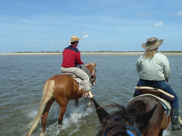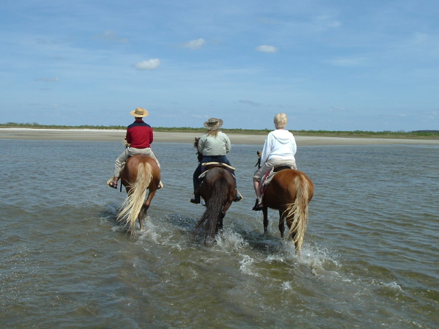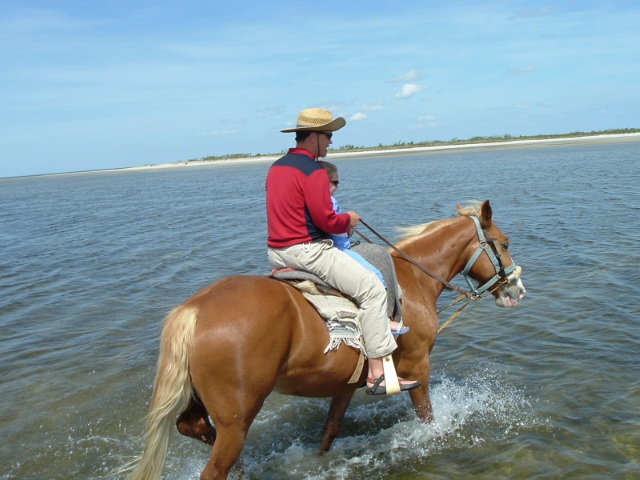 Uncle Mike & Grace went first Honey loved the refreshing river Sheryl our guide is on the right This was Sue a Belgian horse for the bigger riders