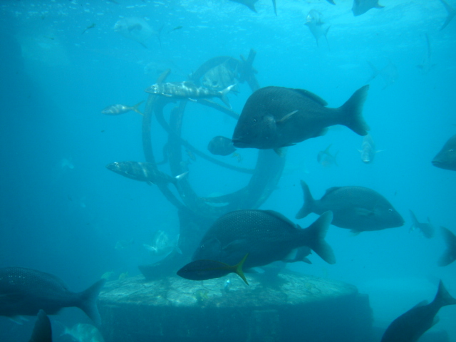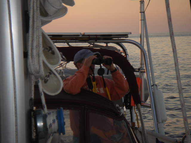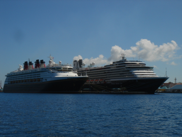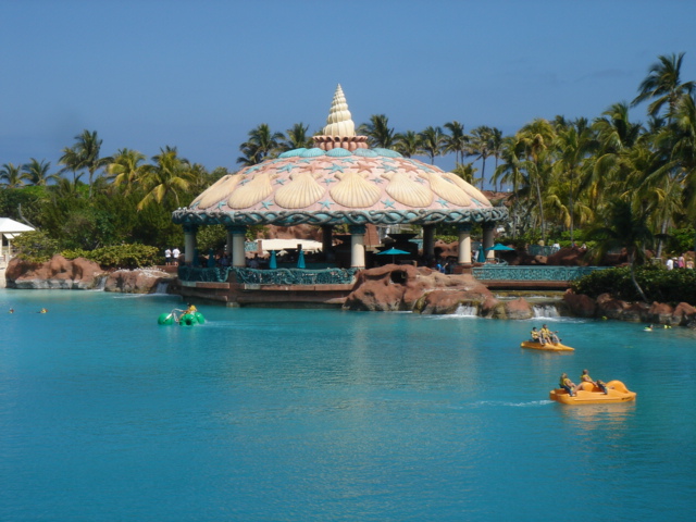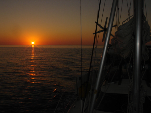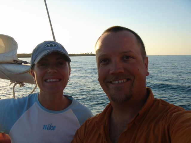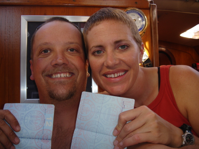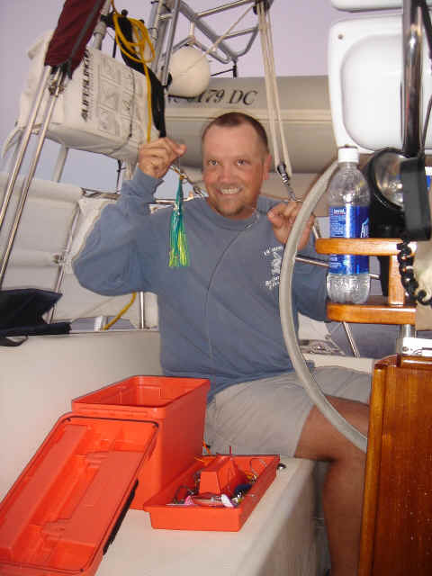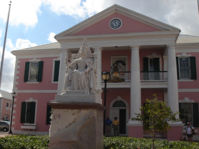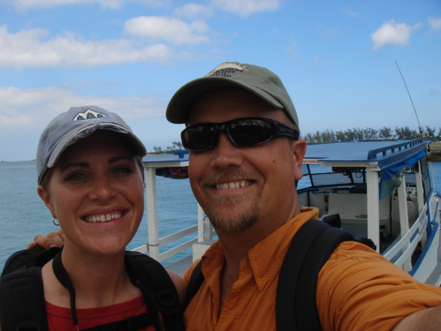We cruised out of the Dinner Key channel and headed across Biscayne Bay, past No Name Harbor and again out into the Atlantic Ocean. The sun was setting as we started to feel the effects of the Gulf Stream. It wasn't long before the dreaded cruise ships were all around us, the seas were confused and were churning us quite a bit. The cruise ships are the worst thing to deal with because they keep their decks brightly illuminated, obscuring their running lights. As a result, it's difficult to tell which way they are moving, or even if they're coming directly at you. Kate did not feel so good and Mike was on watch by himself by 8pm. He dodged many freighters and cruise ships and took care of the most stressful part solo. Kate took watch by 11:30pm. Just before Mike went off watch, however, he came up into the cockpit to see a huge orange light dead ahead that wasn't there just a minute before. He dashed below to check the radar, and to his surprise nothing was showing. He jumped back up into the cockpit to try and figure out what the heck it could be. Kate went to look and the huge orange light had exposed itself even more. It was the moon! We had a good laugh over that one. Really though, it is magnificent to see the moon rise on the water - it is huge and bright orange. Another view into God's incredible imagination. During Kate's watch, the seas had calmed and there was not much traffic to speak of. Mike got up about 2:30am, we had made great time and were already close to Gun Cay. We found a good spot to anchor on the west side of Gun Cay on the charts and started making preparations for the approach. Mike mans the helm while Kate navigates with the computer software down below. We anchored among other boats in 10 feet of water at 3:15am The water was crystal clear and a beautiful ice blue color. We crashed out for 3 hours, Mike slept in the cockpit to keep an eye on things. We rose at dawn and weighed anchor early. We headed out for the Northwest channel to Chub Cay. The day was the best that we have had on the water so far. We could not keep the smiles off our faces. Bathing suits, sunscreen and even a little sun burn aaahhhh! The Bahama Bank is about 12 feet deep the whole way across. We were mesmerized by the sandy bottom, littered with large brown starfish, coral, nurse sharks and loggerhead sea turtles. We saw shrimp dancing on top of the water, flying fish and at sunset whales. We are not sure what type yet. We both rode on the bow for a while, read a lot and listened to some great music thanks to Mike and XM radio. By sunset we had come off of the Bahama Bank and into the Deep Midnight blue colored Tongue of the Ocean, which is 1000's of feet deep. We made it to Chub Cay in the dark about 7:30pm. There was a coral reef just to port of the entrance, and the range to guide you in was not lit. It was a little hairy, but we kept our heads about us, and slipped right into the channel. The boats at anchor inside the harbor were not in the anchorage that we saw on our charts, so we decided that they must know something we didn't and in the pitch black we maneuvered in among them. We set the anchor and kicked back with a little Capt. Ron. (It's a movie, not a rum) One of the best sailing movies ever! We have watched it over and over. We crashed early and got up early. We had the motor running before dawn and we were heading out of the channel by 6:15am. More big smiles today, Presidents day. We are again in the deep and cannot see the bottom. We should enter Nassau around 2pm. Mike will have to go check us in at customs and immigration before we do anything. We can see the islands becoming an addiction. Monday, February 20th We arrived in Nassau at 2pm and cleared customs and immigration at 4pm. We had to take a slip to get cleared in by customs and decided to keep it due to the poor holding ground at the anchorage in the harbor. Only the Captain may leave the boat until the officials arrive, so Kate had to stay on the boat and keep busy until then. As soon as we cleared customs, we pulled down the yellow quarantine flag, raised the Bahamas courtesy flag and set out immediately for the shops across the street. We saw first hand what we knew to be true, that items are much more expensive in the Bahamas. Food is double what you would pay at Wal-Mart, especially meat or chicken, and the home goods, decor, kitchen utensils etc.. are sometimes 5x more expensive here. There is an import tax of 33% that the Bahamian govt puts on imported goods so that people will buy local whenever possible. They do not have income or sales tax either and those are built into the price. Liquor and jewelry are less expensive than in the states and there are numerous stores on every block. There is a pool at the Yacht club which we have taken advantage of and have met a lot of really nice cruisers on the docks. We did get an internet connection at our Marina, the Nassau Harbor Club. We decided to stay another day to take in the sights and go to Atlantis, the mega resort on Paradise Island. We had a great dinner of grilled chicken breasts and Israeli Couscous, our friend Paul turned us onto it and we had to provision at the Fresh Market in Coconut Grove, a specialty foods store that had everything! Anytime you come across the Israeli stuff go for it! Unfortunately they only had one bag. Mike planned our next passage to Allan's Cay. We did find out that a cay is an island of less then one mile in length. Allan's Cay has lots of coral reefs for snorkeling, also Leaf Cay nearby has a unique population of iguanas that come right out to you when you land your dinghy. We crashed soon after dinner and planned on seeing Nassau the next day. Tuesday, February 21st Did a little sightseeing around Nassau today. Not necessarily what you think of when you think of the Bahamas, but unfortunately, it's what most people who only travel on cruise ships get to see. The downtown area near the cruise ship dock is very commercialized,