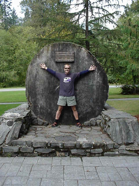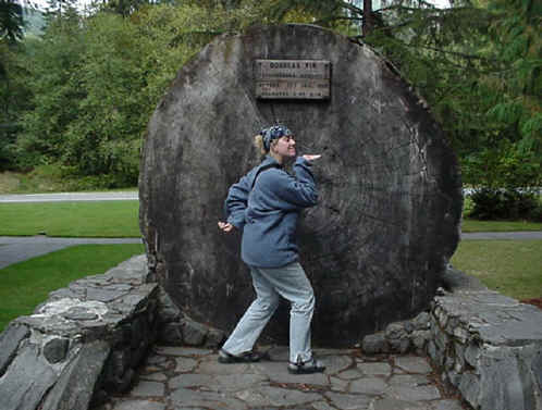 North Cascades National Park, WA September 19, 2001 Location: North Cascades National Park, WA We stayed the night here after crossing the border and picking up some supplies. Crossing into the States was MUCH easier and quicker than getting out! Our campsite was right on the Nooksack River. It's the time of year for the Salmon to be spawning. It was cool to see them swimming upstream, but a little depressing to see how tired and beat up they were. Some were already dead on the river's edge, but there were 100's still swimming upstream. We thought about having a fish feast, but it was illegal to catch them because they were Chinook Salmon, and they are still on the endangered list. September 20, 2001 Location: Driving thru Washington & Oregon We drove through Oregon and stopped in Eugene. Home of Animal House the movie. We found out the Frat house had been torn down. So we did some laundry, got an oil change, and hung out with some locals. We drove to Northern California from Northern Washington heading for Redwoods National Park! We arrived at midnight and in our attempt to find a campground drove through Stout Grove, a 20-acre grove of really big Redwoods. That was sooo eeerie! It was totally COOL after we made it through (and lived!), but definitely SPOOKY!