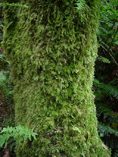 Moss growing on the tree trunks |