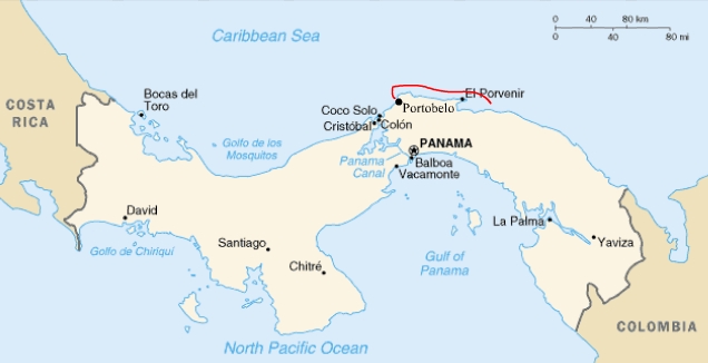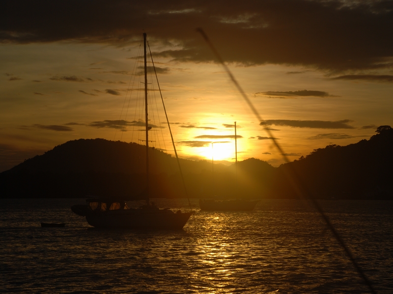 Sunrise in Portobelo, we were ready to leave! The guys were up throughout the night checking our position because of the poor holding
