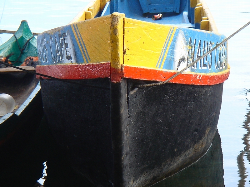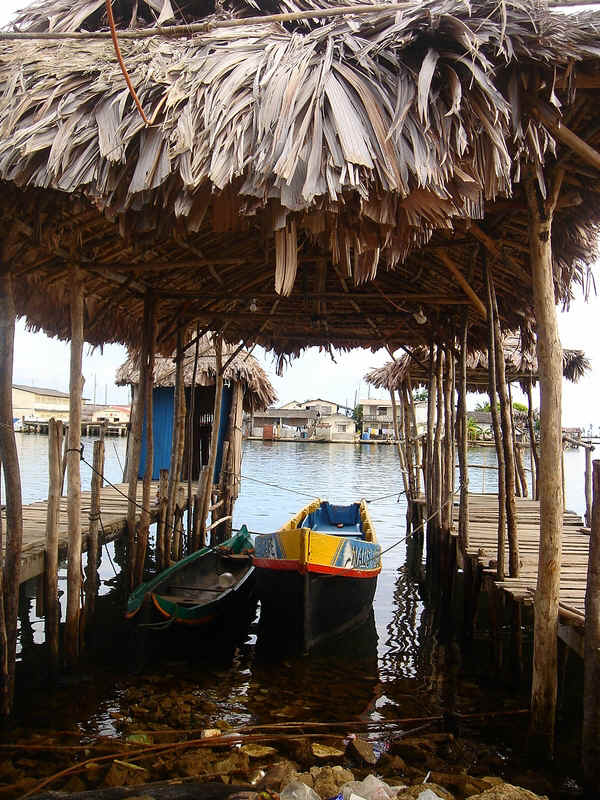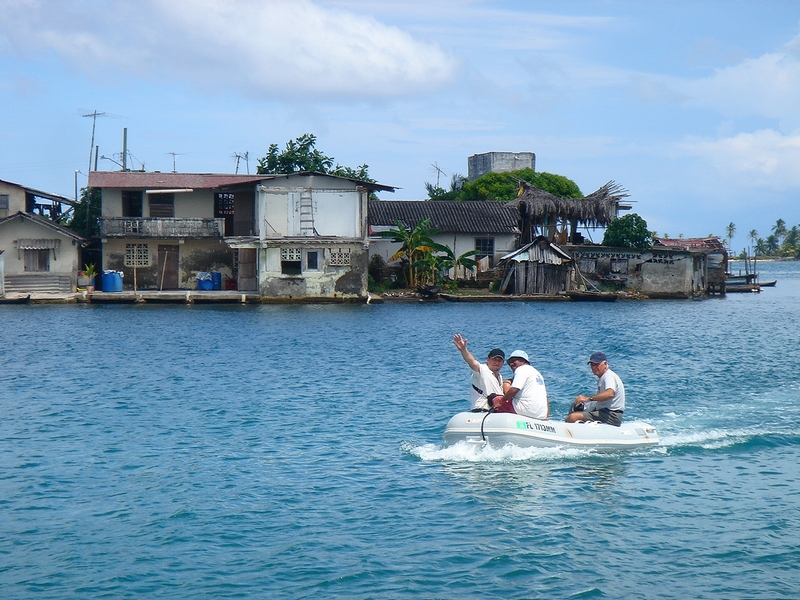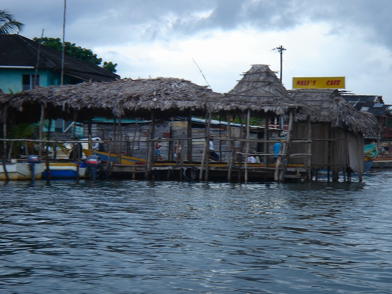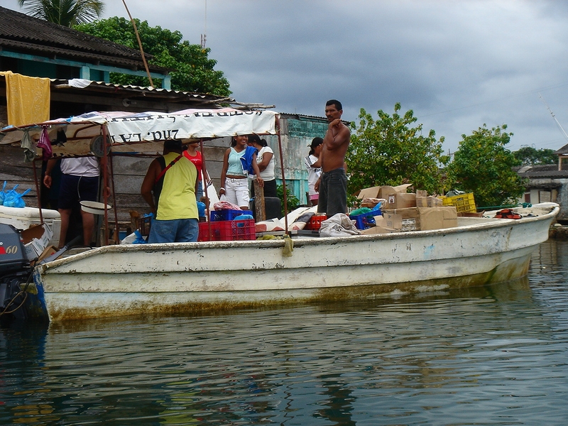 A Colombian Supply boat is on the right side, they would bring rice, sugar & veggies and they would buy coconuts from the locals