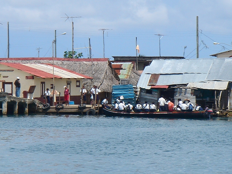 The island of Corazon is just across from Nargana and at this time is only accessible by boat, the boat of school children had just pulled in, that huge cayuco was made from a tree!