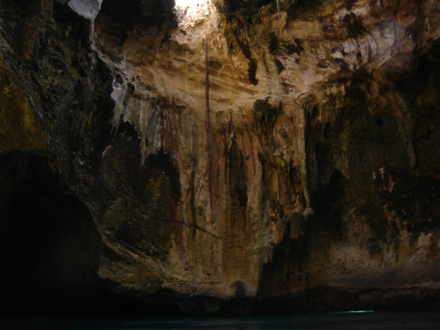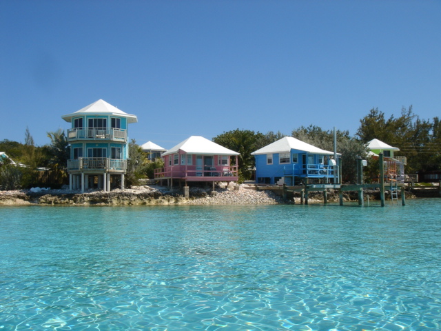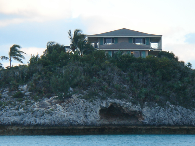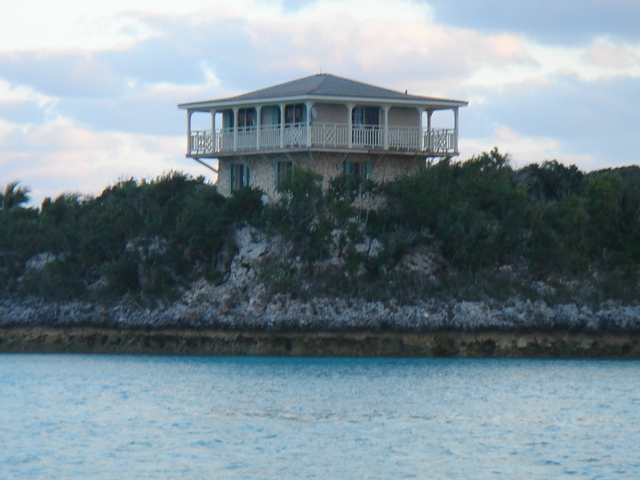 This is the place where the James Bond movie Thunderball was filmed. The last sequence in the movie where scuba divers are swimming into an underground cave and fighting each other, was done right here. We had been hearing about this place for weeks, and we finally made it. It was better than we expected. Awesome!! Fish outside one of the entrances to the Grotto The ceiling of the Grotto Inside Thunderball Grotto The Thunderball Grotto Club Thunderball has a great view and excellent conch fritters! A nurse shark at the dinghy landing on Staniel Cay A sting ray at Staniel dinghy landing Walking around town in Staniel Cay, some more cottages for rent