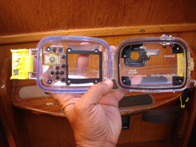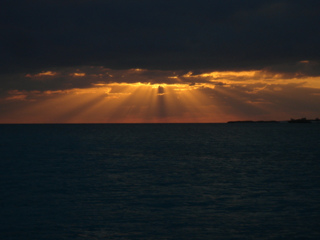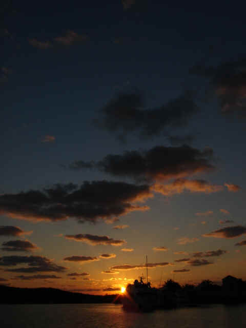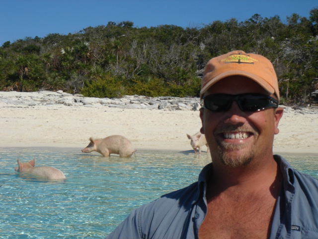 Sunday March 5, 2006 Sampson Cay We left Chicken Cay Saturday afternoon and were anchored in Sampson Cay Saturday and Sunday. We could get wireless from the anchorage for a little while, but like all great things, it just quit working! We noticed a boat in the anchorage from Beaufort, NC called Jura. We went over and introduced ourselves to Wayne & Norma. They were on a beautiful Westsail 32' and we knew a lot of the same people. We had even heard a story about them before. It turns out that they are the folks who were in the Morehead City boatyard waiting to be splashed, when a storm hit and the yard crew said they would put the boat in after lunch, when the storm had passed. That same hour lightning from that storm hit their boat and fried all of their electrical systems. It was a heartbreaker, but at least they had insurance. The boat looks awesome and has all new electronics. That night Duke was playing UNC and Norma & Wayne turn out to be huge Carolina fans like Paul & Susan. They talked the bar at Sampson Cay Club Resort into playing the game that night and invited us to watch with some fellow North Carolinians. We were too tired to go and it was a blowin' so we opted out and listened to it on our XM radio. Thank God we didn't go, it was a major let down as usual with us and sports. The next day a front was being forecasted and that means hide out and get protection from the prevailing winds. We headed down to the cut between Big Majors and Little Major. We were the second boat in the anchorage and by the time the front came through there were 20 plus boats in the anchorage. Monday March 6, 2006 Big Majors We set in our anchor and Mike dove on it to make sure it was dug in well. It was fine and we had some exploring to do. Thunderball Cave, where the James Bond movie was filmed was only a dinghy ride away, so we got our snorkel gear and took off. There were also some wild pigs on a beach around the west coast of Big Majors so we went there first. These pigs were huge! They were aggressive like the iguanas too. All they wanted was food and they squealed the whole time. We fed them peanut butter crackers and took off! We went around the corner to the Thunderball Grotto and loved it! It was truly beautiful, the tide was running so it carried us right into the cave entrance, almost like a tunnel, with hundreds of tropical fish everywhere. They start to greet you in your dinghy as you pull up. Inside the cave was 15-20ft deep and crystal clear with all kinds of different exits underwater. We swam through all of the holes we could find and had the whole place to ourselves. This is a can't miss. We later dinghied over to Staniel Cay to make phone calls and check out the local grocery store. The homemade bread was fantastic and the locals were charming! The lovely lady at the Pink grocery store told us about a 300lb. Jewfish that likes to hang out in the Grotto. We would have loved to have seen him, after we were told by locals about him so we knew it was safe. We had lunch at Club Thunderball, some great conch fritters and Kaliks the Bahamian brew. The view was gorgeous up on top of a hill over looking the Islands and Staniel Cay. Tuesday, March 7, 2006 Big Majors We had a great day reading and even spent a few hours trailing each other behind the dinghy with a rope - a great way to snorkel through the whole anchorage without swimming. We scoured the anchorage for shells and conch, hoping to find some dinner. We found lots of Sand Dollars, a few Sea Biscuits and a Horse Conch. We were really hoping for some conch to eat , but we still have not found any. The front came through that night and blew pretty hard, about 20-25 knots, but it wasn't bad because we had picked our anchorage carefully. When it blows hard, the main concern is making sure that when the tide switches that your anchor will turn with it and continue to hold. Bruce Almighty (our anchor) has done quite well, we are very pleased that our anchor has held through everything that's been thrown at us so far, without dragging a bit. Many others have not been so lucky. We left Big Majors the next morning. Sampson Cay Club One of the rental houses on Sampson Cay Another Sampson Cay house with a cave at the bottom of it Sunset at Sampson Cay Sunrise at Sampson Staniel Cay Yacht Club Staniel Cay rental Cottage Staniel Cay Resort area Bougainvillas Staniel Cay Resort, the landscaping was gorgeous and in a place where you don't find much soil Another cottage for rent All of the colors were done by a local artist, Joann Mann SCYC cottages on the water Bahamian Conchs at Club Thunderball The view from Club Thunderball, Staniel Cay is on the left The view from the Club The grotto is under the island in the middle of the picture, as seen from Club Thunderball The Wyld Pygs (sorta like the Wyld Stallyns from Bill & Ted's Excellent Adventure) on Big Majors They swam right out to us! Can you see the pig in the middle. What is he doing??!! The underwater housing for our digital camera It seals our camera in, watertite All of the buttons are on the housing to work every feature of the camera