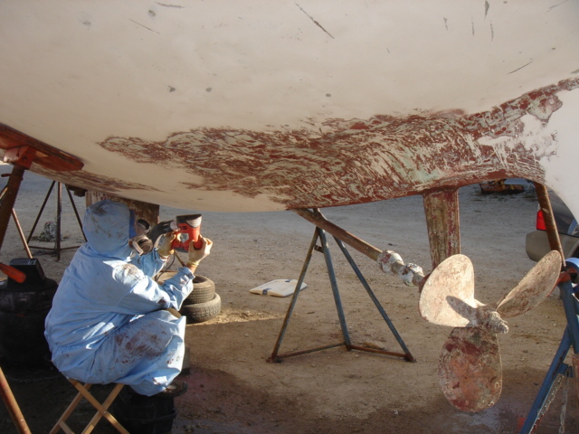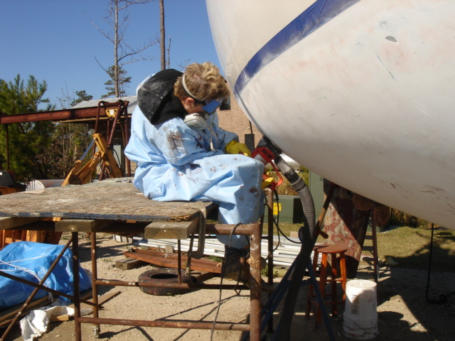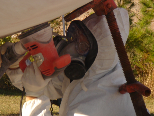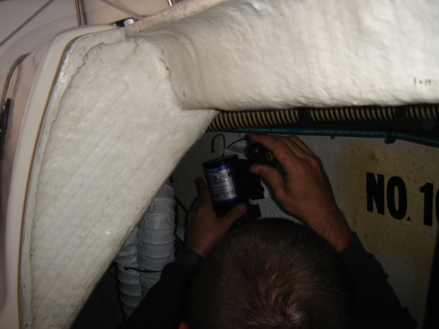 The stuffing box being prepared for a little maintenance. The plan is to install drip-free packing.