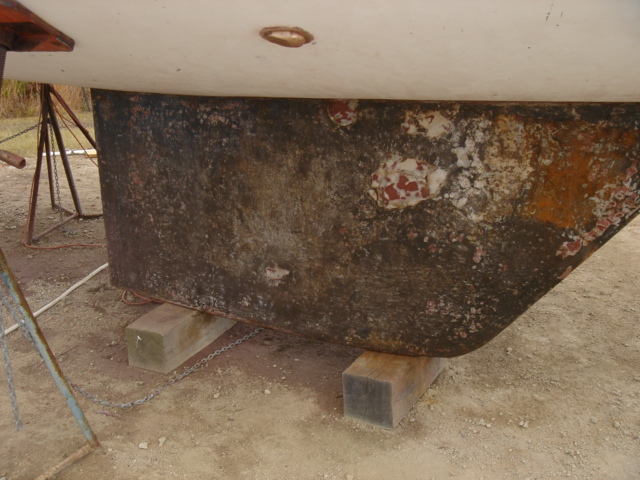 Before recoating, the keel has to be sanded/grinded down to bare metal, then immediately primed with a metal primer.