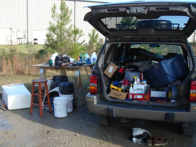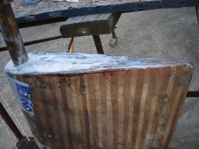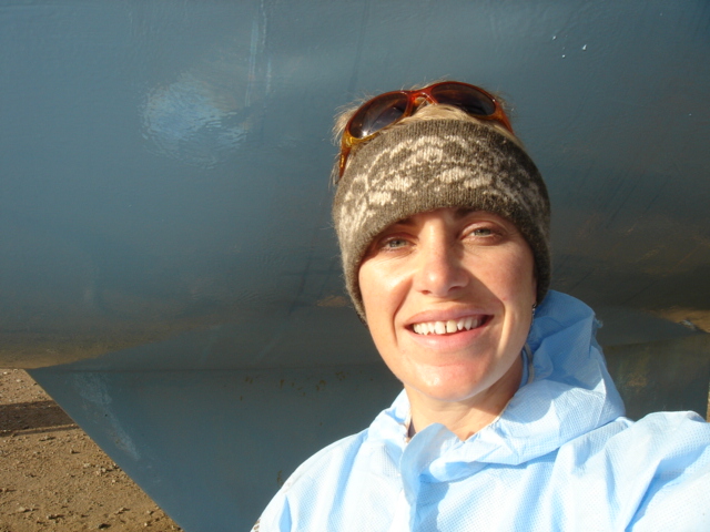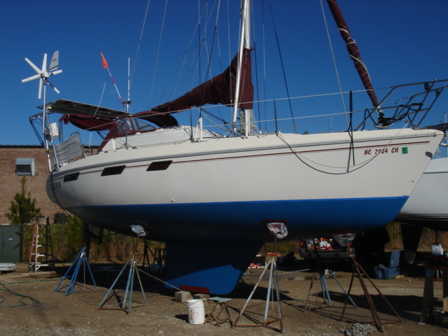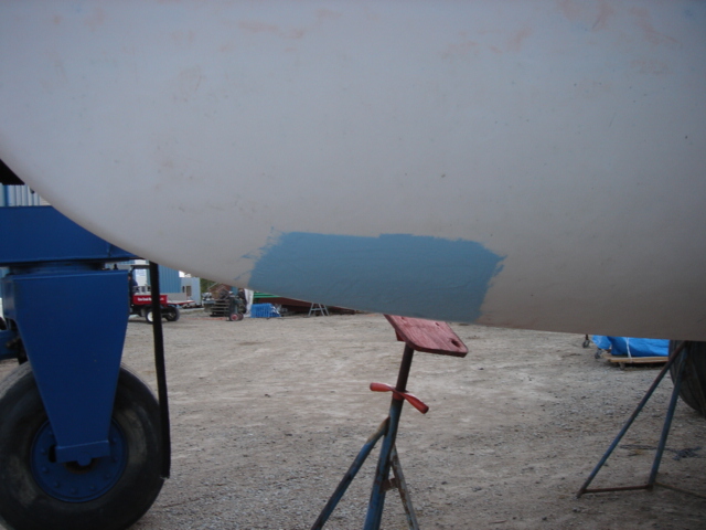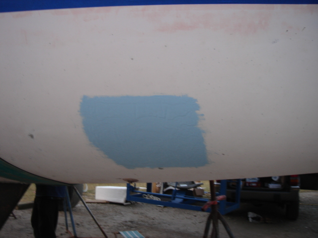 Now, to start with the barrier coat Pile O' Crap We started applying the barrier coat right before noon And, you can see that it was nearly dark when we finally finished. This is when you realize that maybe you don't want a bigger boat. Finally done! Where are we? Finished product during daylight hours